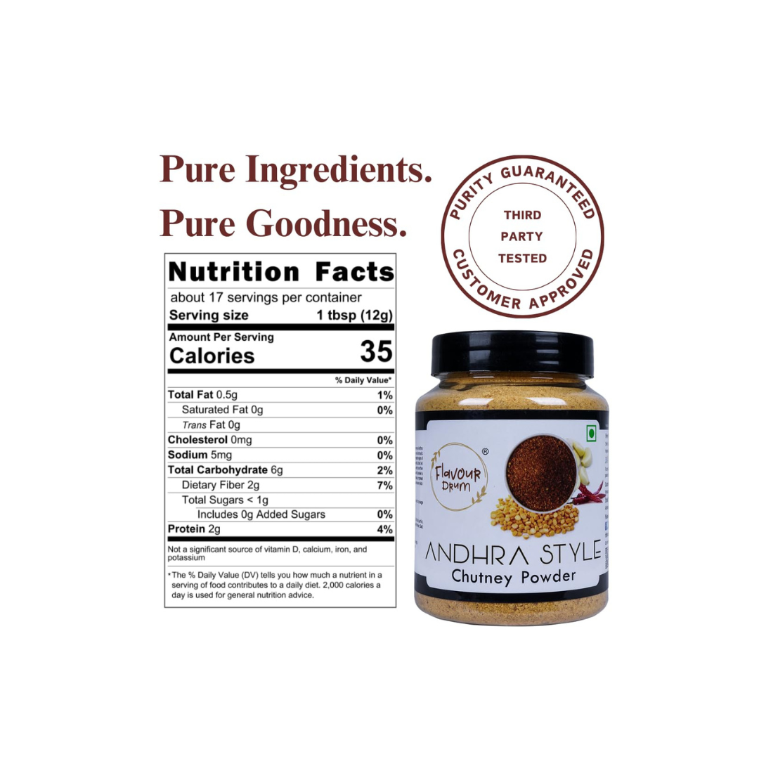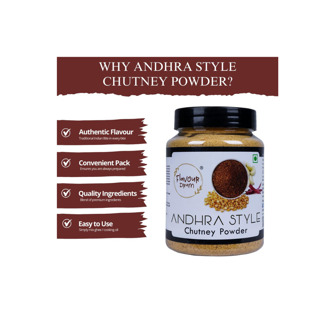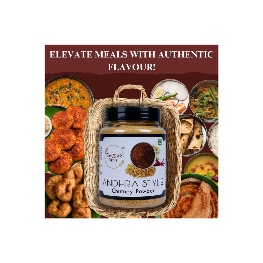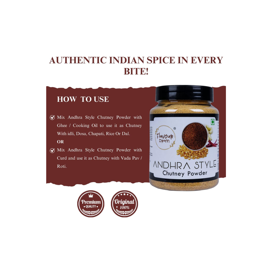 - Traditional Andhra-style chutney powder with bold, spicy flavors.