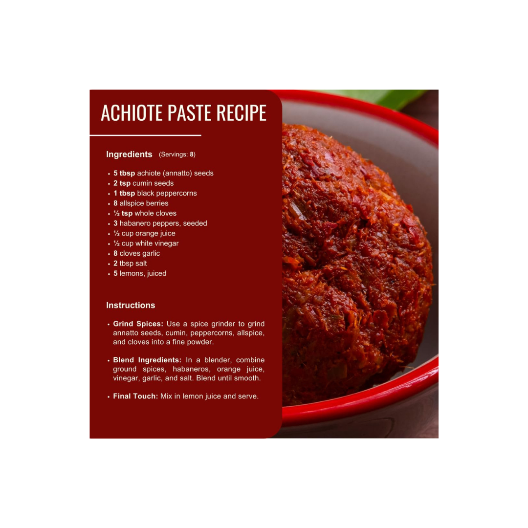 - Natural food coloring derived from the seeds of the achiote tree.