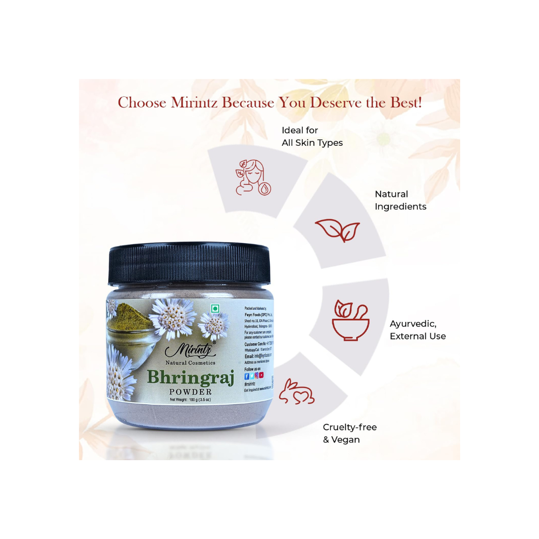 - 100% pure and natural Bhringraj powder, traditionally used for hair care.