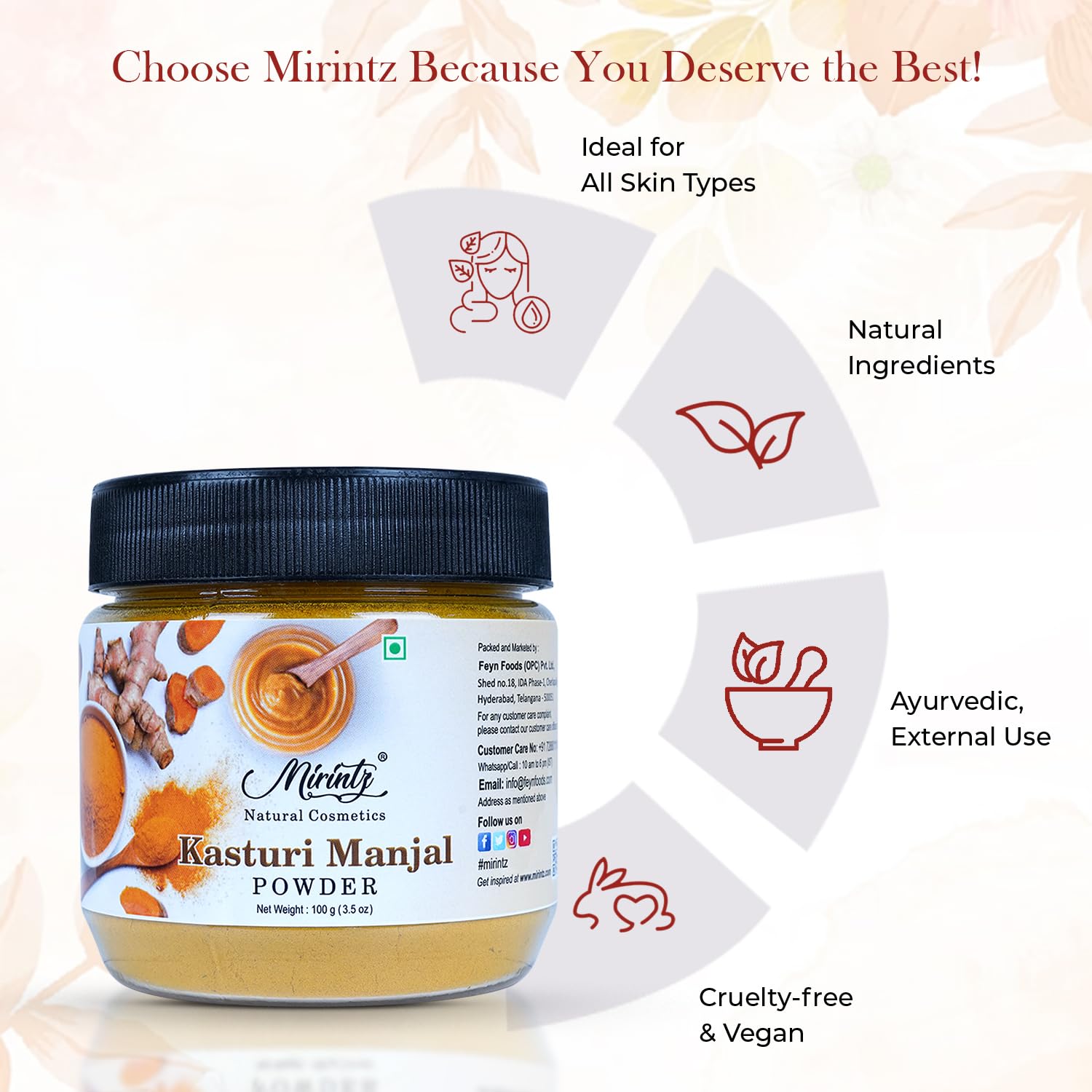 - 100% natural Kasturi Manjal (Wild Turmeric) powder renowned for beauty and skincare use.