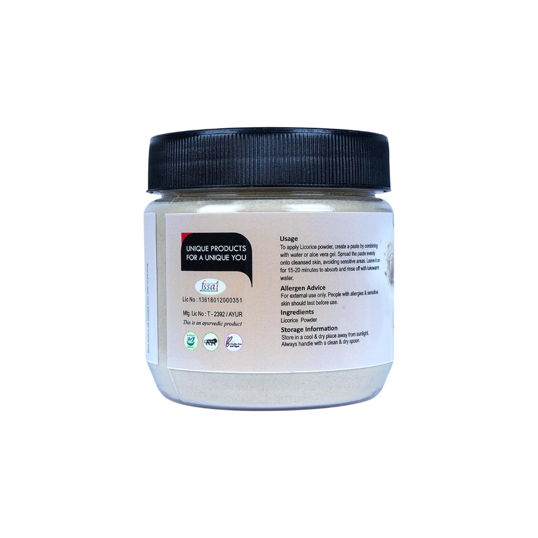 - 100% natural licorice (mulethi) root powder, finely ground for easy use.