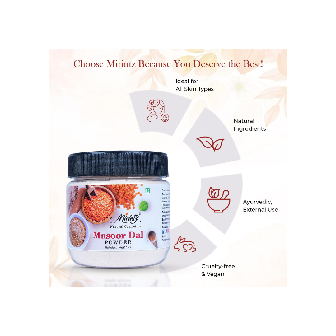 - 100% pure and finely ground Masoor Dal (Red Lentil) powder.