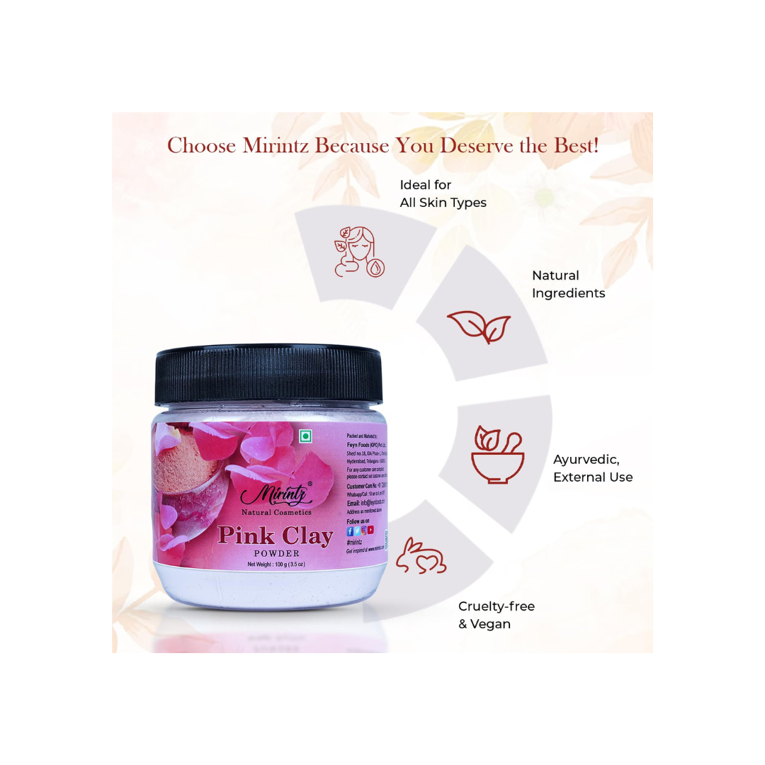 - 100% natural pink clay powder a gentle blend of red and white clays.
