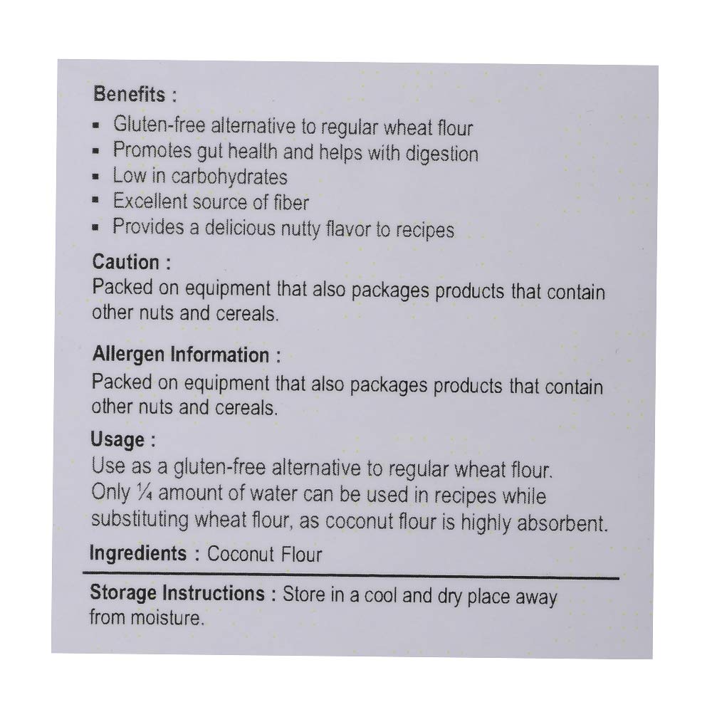 I was looking for a healthy, unprocessed flour and this is it. The coconut flour is of high quality. It's a good addition to my diet.